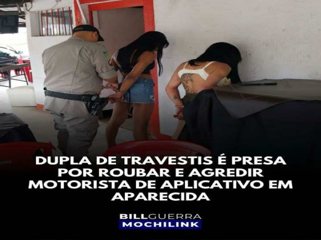 Duas travestis, de 19 e 27 anos, foram presas em flagrante na manhã deste sábado (18), em Aparecida de Goiânia, suspeitas de roubo e lesão corporal contra um motorista de aplicativo de 37 anos. A prisão foi realizada em uma distribuidora de bebidas na Vila Nossa Senhora de Lourdes, após a vítima acionar a Polícia Militar. O homem relatou que, após combinar um programa sexual no valor de R$ 300 com uma delas, foi extorquido e agredido pela dupla.